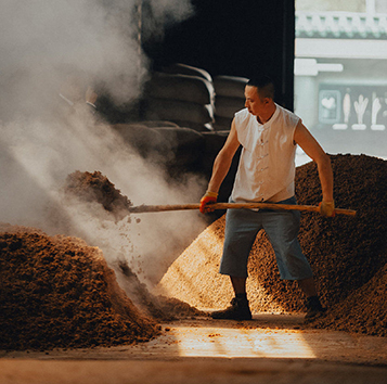 這種香型的白酒,以高梁為原料。以小麥高溫制成的高溫大曲或縱曲和產酯酵母為糖化發(fā)酵制,采剛高溫堆積,一年一周期,二次投料,八次發(fā)酵,以酒養(yǎng)糟